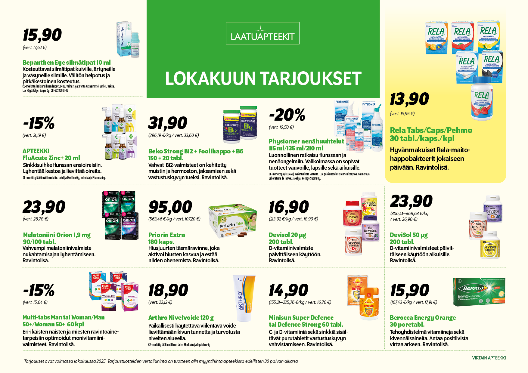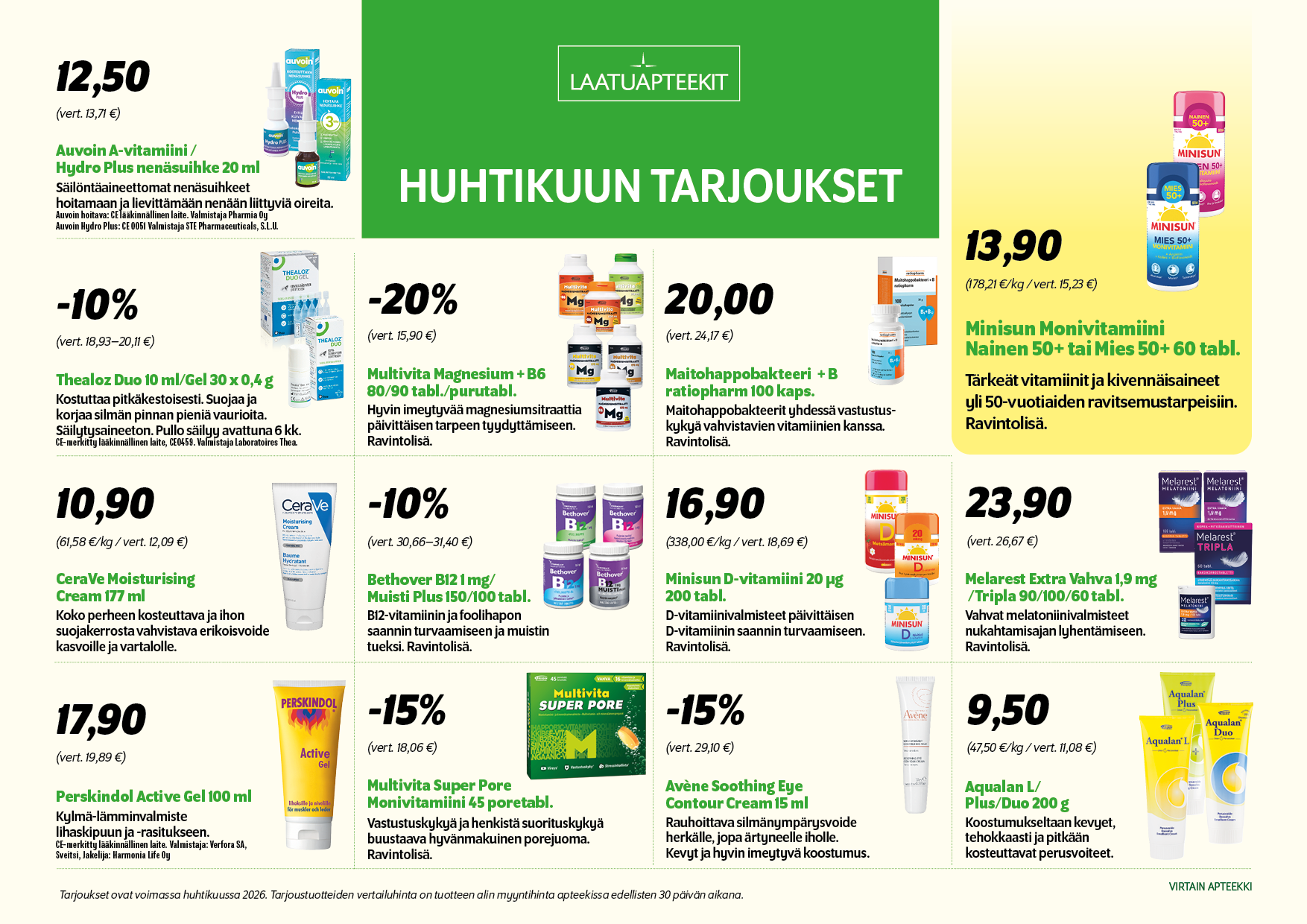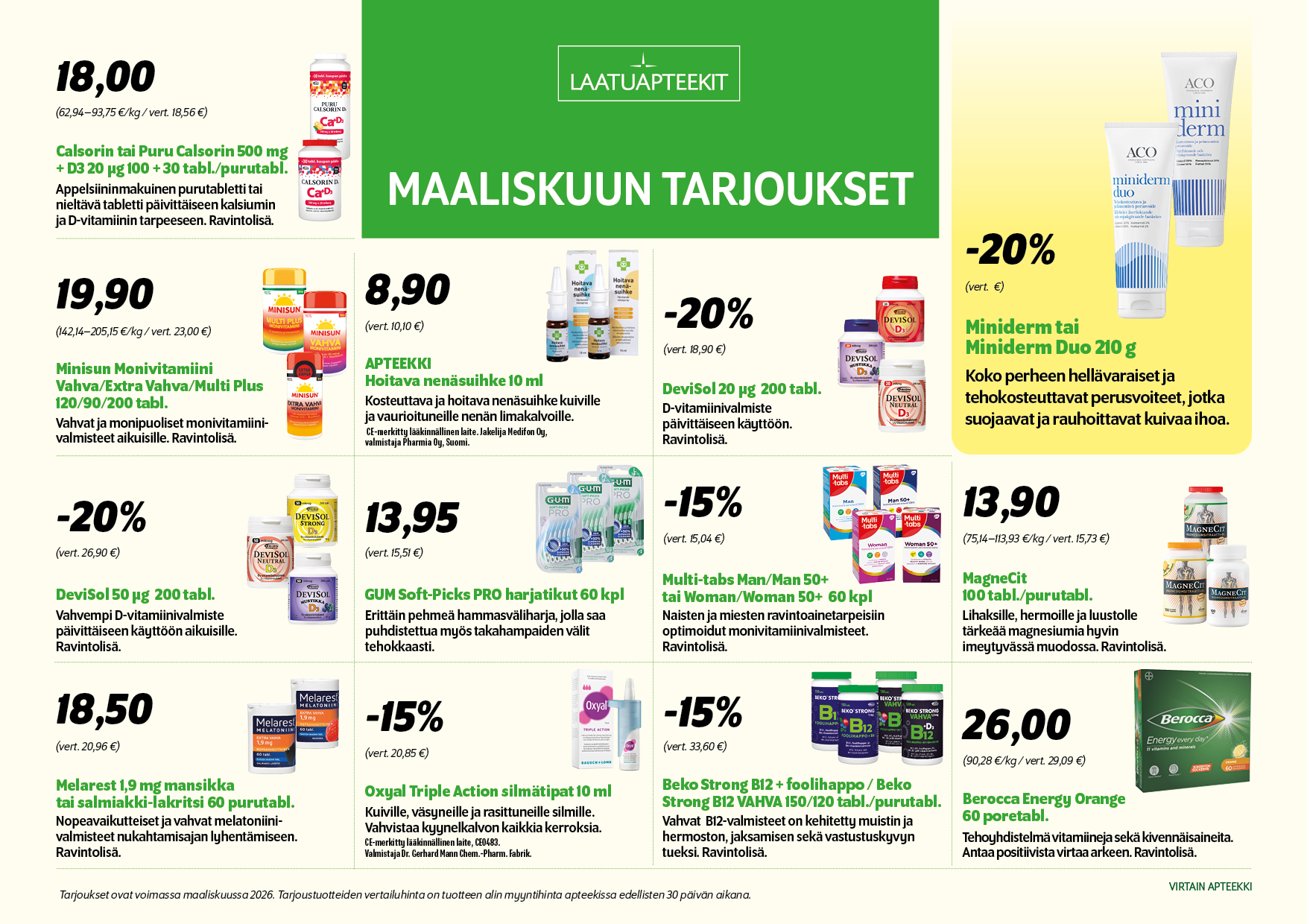Tarjoukset Tule käymään Virtaintie 30 34800 Virrat Sijainti kartalla > Olemme avoinna Ma-pe: 9-18La: 9-15 Ota yhteyttä (03) 474 0180 virtain.apteekki@apteekit.net